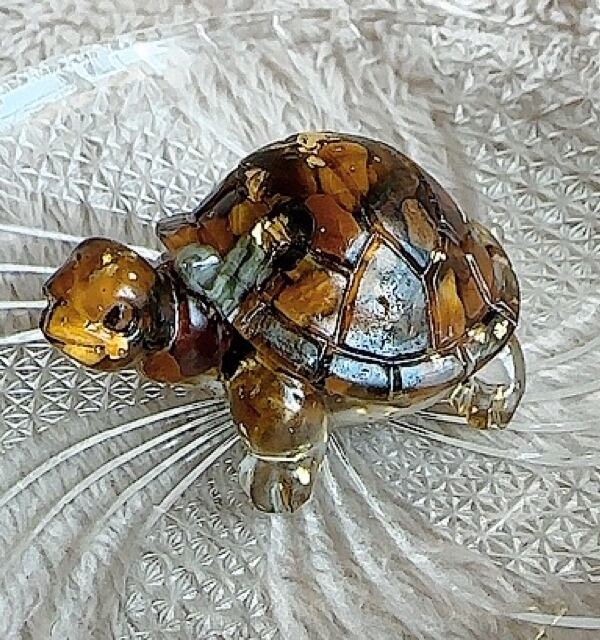★タイガーアイの小さくて可愛い亀さんのオブジェです!金粉のキラキラも入っていて、とっても綺麗です☆
