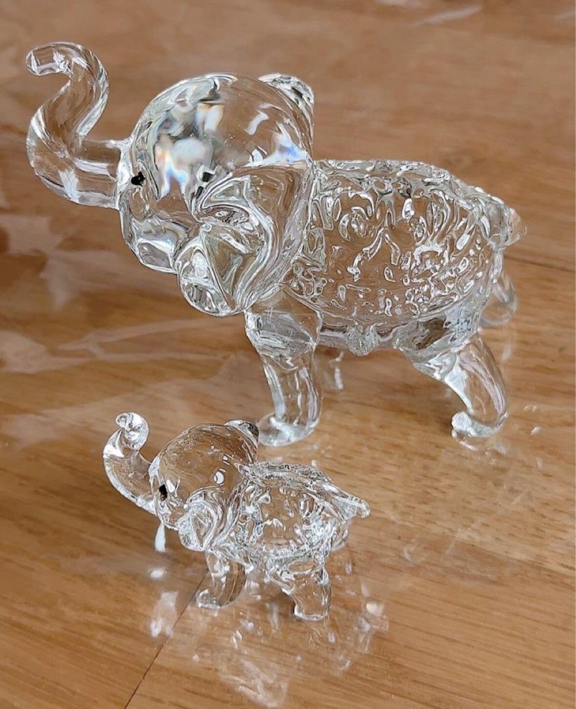 ★クリスタルガラスで作られた輝く象さん親子のオブジェになります!