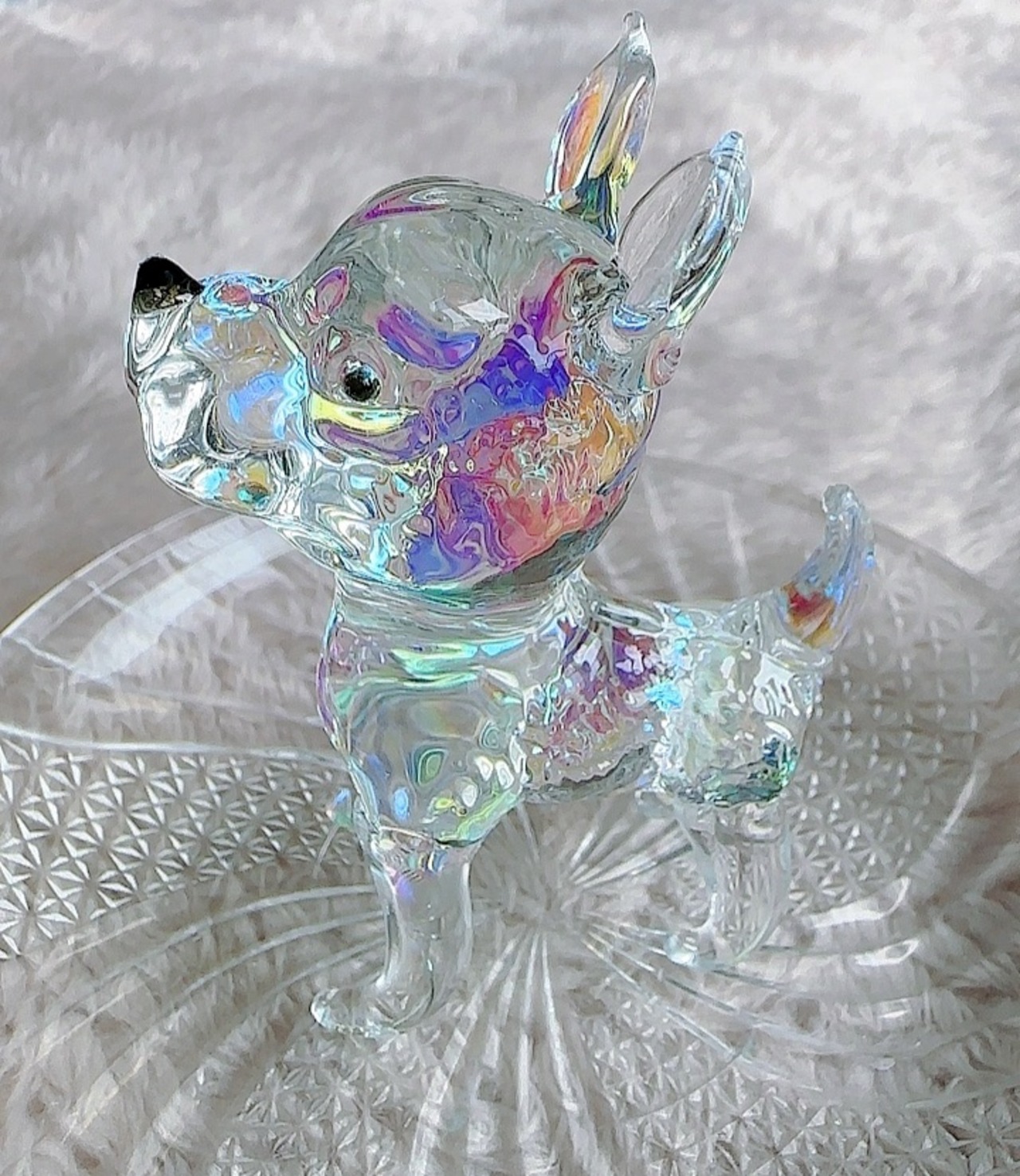★クリスタルガラスの虹色の犬のオブジェになります!