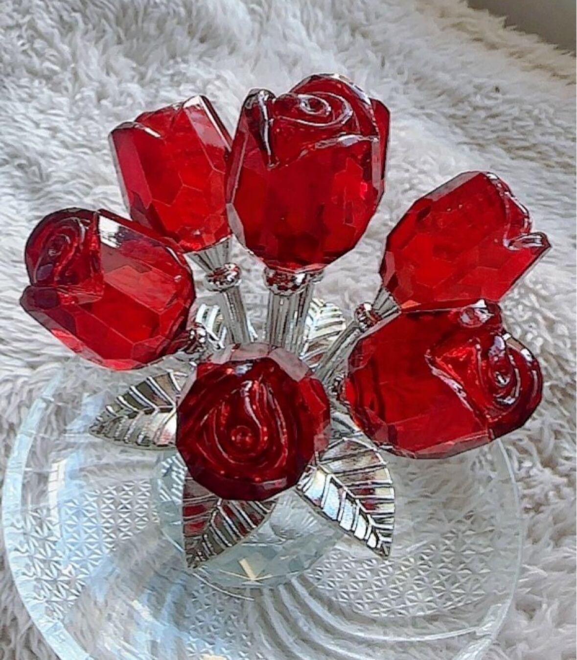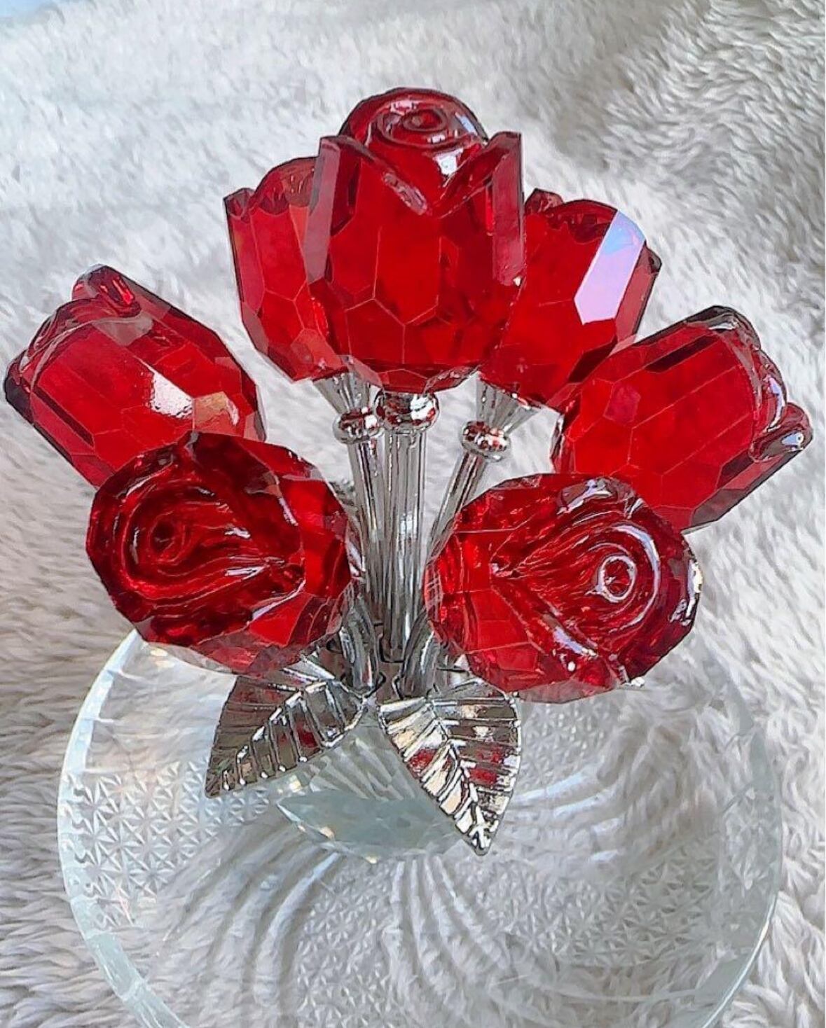 赤いクリスタルローズの花束は、深い情熱的な愛情を表します。